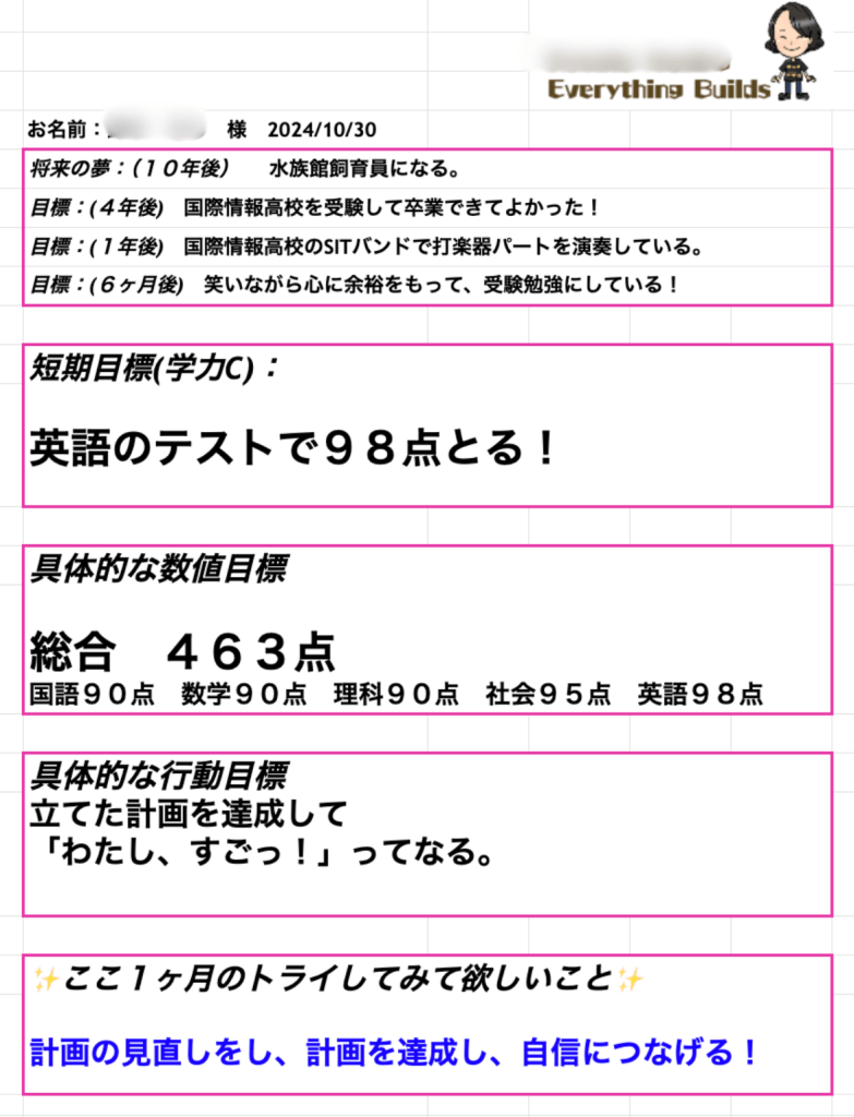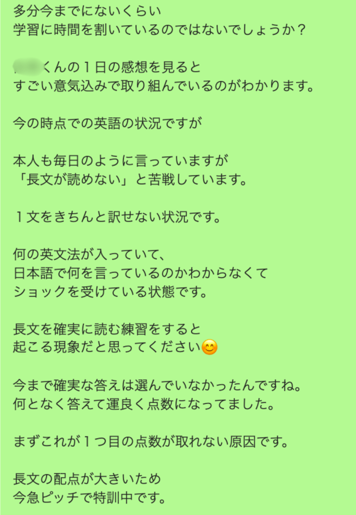 ●受講前、学力テスト76点から最高得点96点達成。