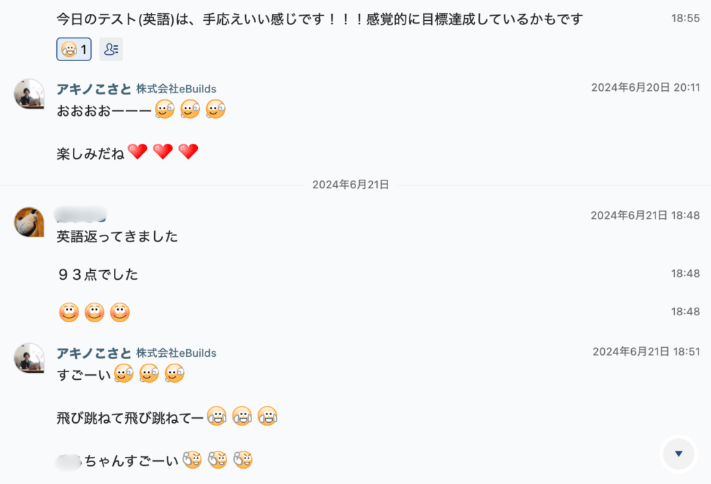 お子様のレッスンでの状態をご家庭でも把握していただき、褒めて、励ましていただきたいと思っています。
